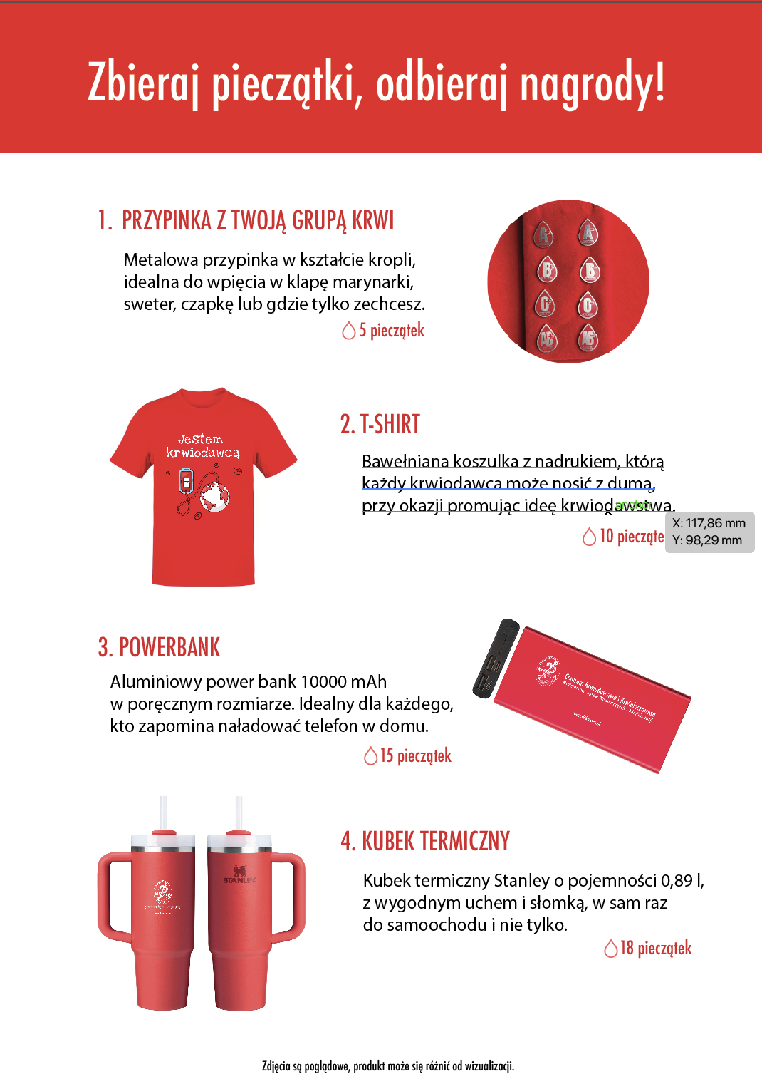 – zbieranie pieczątek („kropli”) za donacje